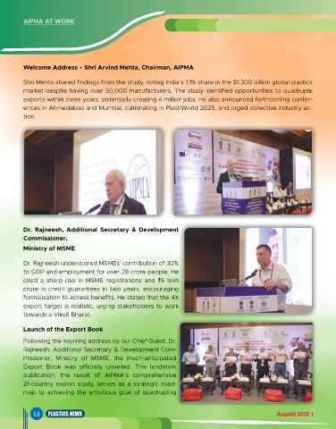 ences in Ahmedabad and Mumbai, culminating in PlastiWorld 2025, and urged collective industry ac-