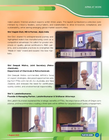 India’s plastic finished product exports within three years. The launch symbolised a collective com-