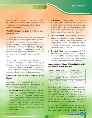 products. Increasingly PLA films are being helped by growing demand in food packaging,