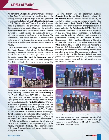 at Tata Auto Comp Systems Ltd., shedding light on the Opportunities in the Plastic Industry, chaired by
