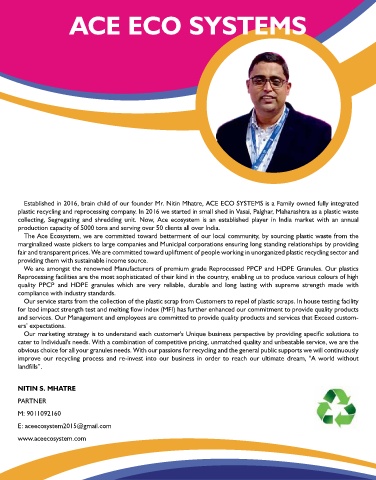 collecting, Segregating and shredding unit. Now, Ace ecosystem is an established player in India market with an annual