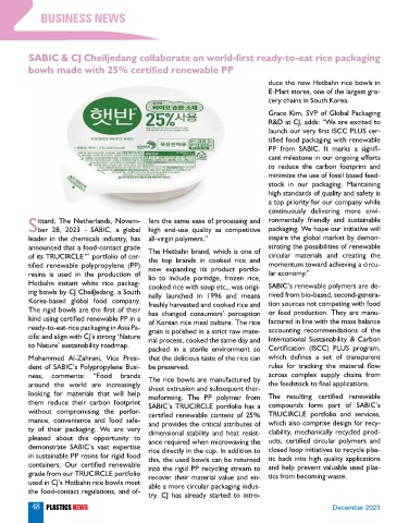 Hetbahn instant white rice packag- cooked rice with soup etc., was origi- SABIC’s renewable polymers are de-