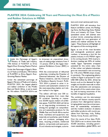 of PLASTEX to Drive Egypt’s Ever- authorities, including the Chamber of for 11% of the MENA’s share of plas-