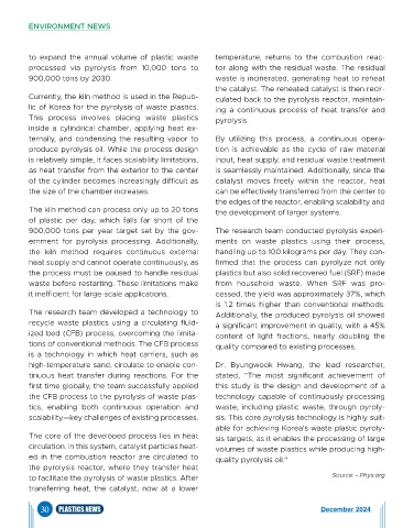 lic of Korea for the pyrolysis of waste plastics. ing a continuous process of heat transfer and