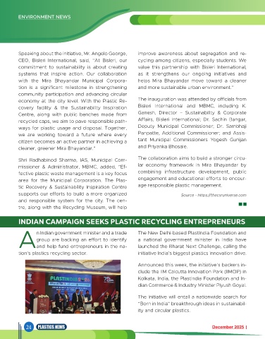 tion’s plastics recycling sector. initiative India’s biggest plastics innovation drive.