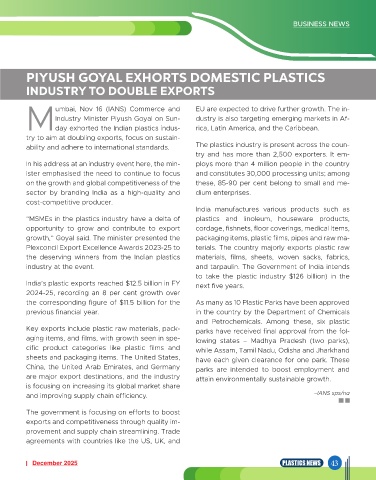 PIYUSH GOYAL EXHORTS DOMESTIC PLASTICS