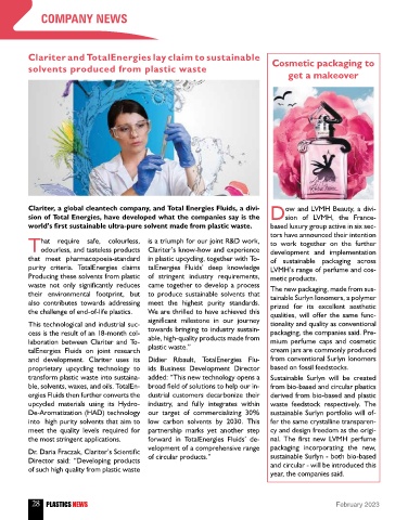 Clariter, a global cleantech company, and Total Energies Fluids, a divi- ow and LVMH Beauty, a divi-