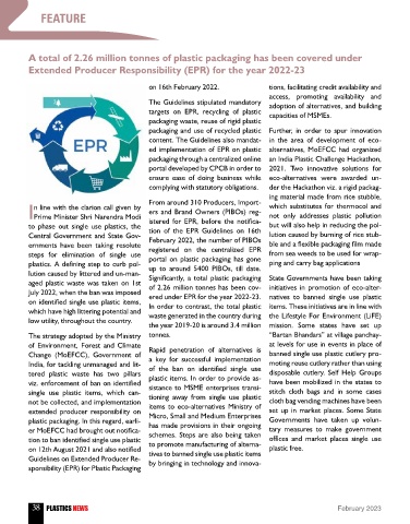 to phase out single use plastics, the tion of the EPR Guidelines on 16th but will also help in reducing the pol-