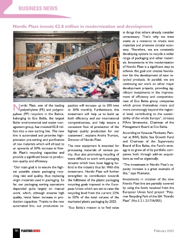est possible plastic packaging recy- investment, Nordic Plast will further this,” says Plunksnis.