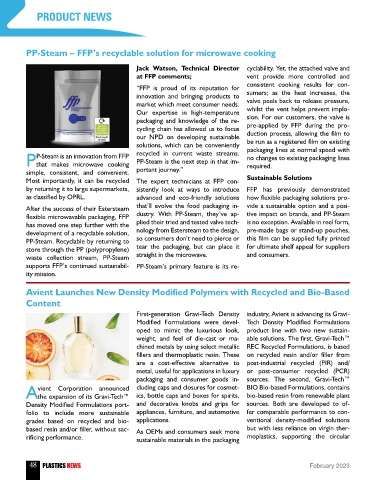 flexible microwavable packaging, FFP dustry. With PP-Steam, they’ve ap- tive impact on brands, and PP-Steam