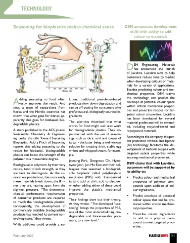 Seasoning for bioplastics makes chemical sense DSM announces development