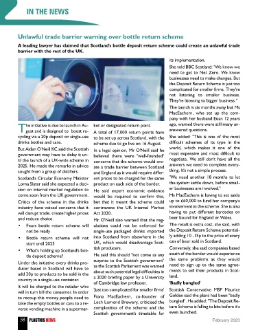 • Bottle return scheme will not into Scotland from elsewhere in the ly adding 10 -15p to the price of every