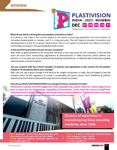 INTERVIEW PLASTICS NEWS 61 February 2023