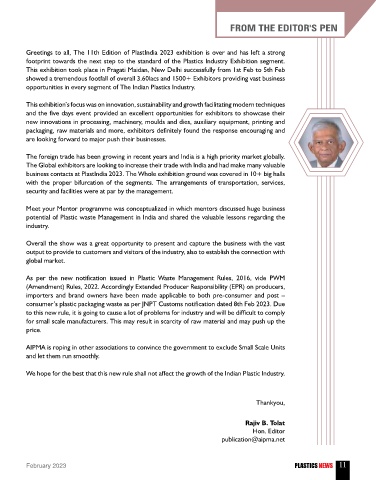 Greetings to all, The 11th Edition of PlastIndia 2023 exhibition is over and has left a strong