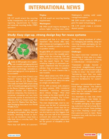 ners, the U.S. Plastics Pact, the Reus- The main disadvantage cited by cus- use participation,” the report found.