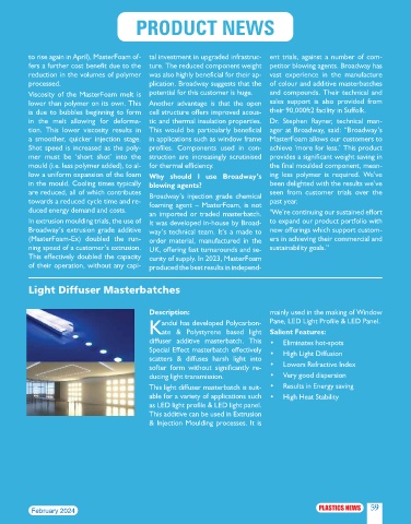 fers a further cost benefit due to the ture. The reduced component weight petitor blowing agents. Broadway has