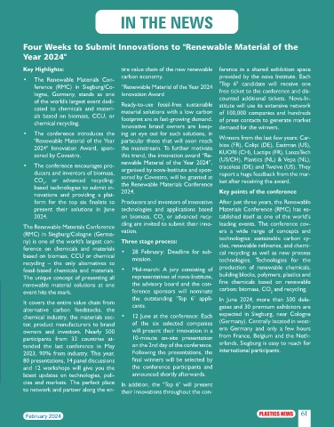 ference (RMC) in Siegburg/Co- “Renewable Material of the Year 2024 "Top 6" candidate will receive one