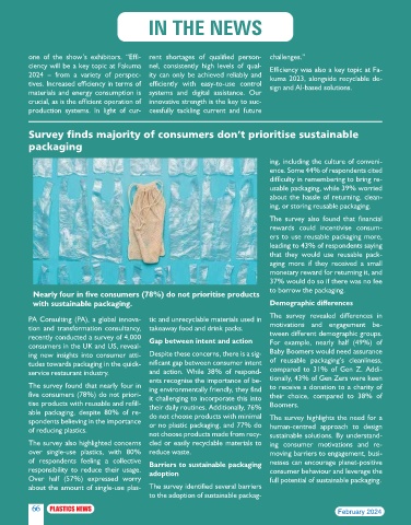 spondents believing in the importance or no plastic packaging, and 77% do The survey highlights the need for a