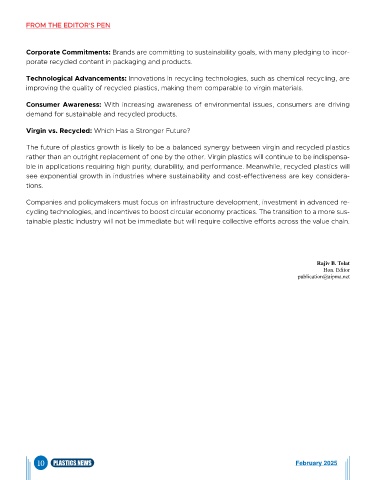 rather than an outright replacement of one by the other. Virgin plastics will continue to be indispensa-
