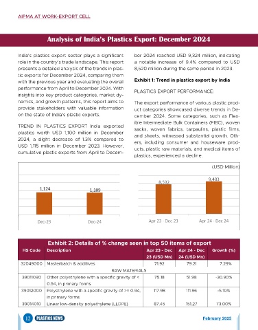 on the state of India's plastic exports. cember 2024. Some categories, such as Flex-