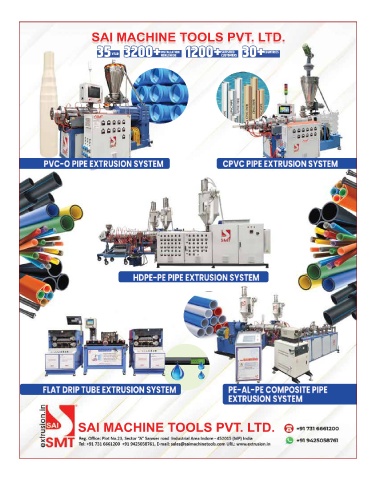SAI MACHINE TOOLS PVT. LTD. INSTALLATION SATISFIED 30+ COUNTRIES YEAR 35 3200+ WORLDWIDE 1200+ CUSTOMERS SAI MACHINE TOOLS PVT. LTD. February 2025 PLASTICS NEWS 19