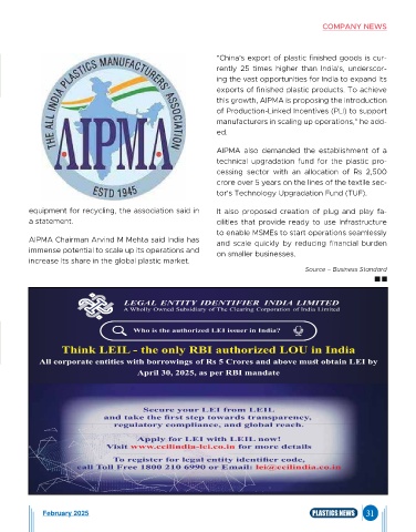 equipment for recycling, the association said in It also proposed creation of plug and play fa-