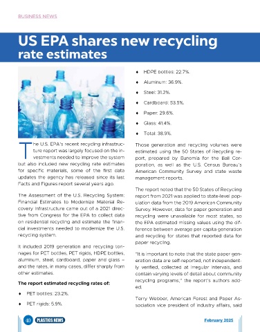 he U.S. EPA’s recent recycling infrastruc- Those generation and recycling volumes were
