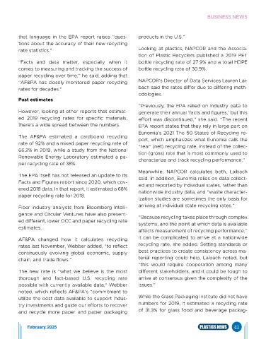 rate statistics.” Looking at plastics, NAPCOR and the Associa-