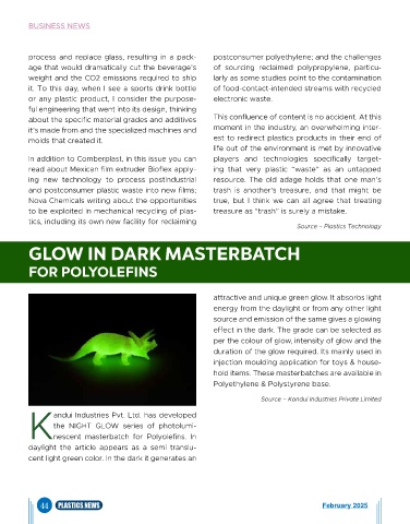 process and replace glass, resulting in a pack- postconsumer polyethylene; and the challenges