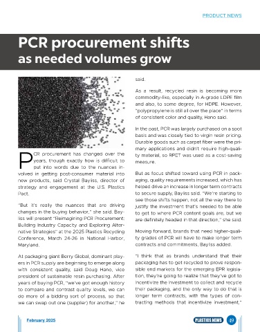 volved in getting post-consumer material into But as focus shifted toward using PCR in pack-