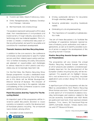 Panel Discussions And Key Topics For The Re- a wide spectrum of innovations in plastics recy-