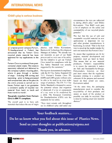 Toy-grade recyclate from Fortum for Standardisation (CEN) sets the possible can truly be recycled. This