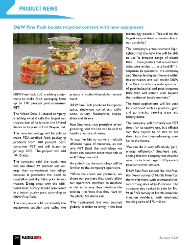 up to 100 percent post-consumer D&W Fine Pack produces food pack- The food applications will be used