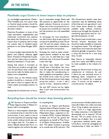 dustry' held in Aurangabad. Opportunities in Plastics Industry' was 18 to 19 kg of plastic per person an-