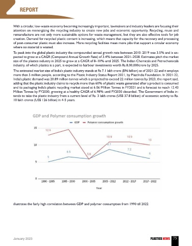 illustrates the fairly high correlation between GDP and polymer consumption from 1990 till 2022