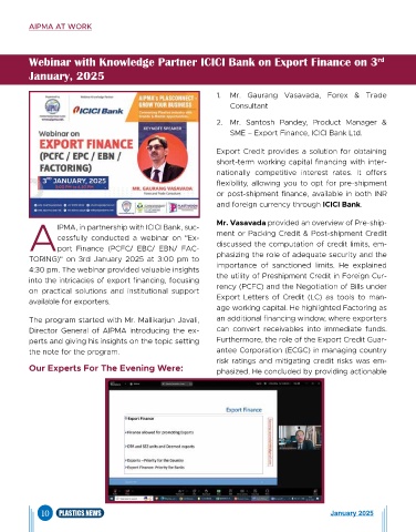 cessfully conducted a webinar on "Ex- ment or Packing Credit & Post-shipment Credit