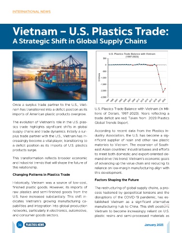 nam has transitioned into a deficit position as its U.S. Plastics Trade Balance with Vietnam (in Mil-