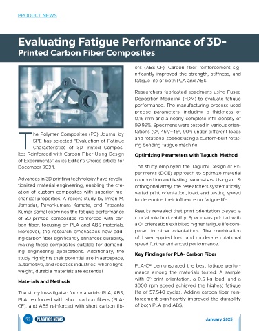 The study investigated four materials: PLA, ABS, life of 57,540 cycles. Adding carbon fiber rein-