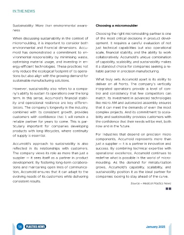 sustainable manufacturing solutions. What truly sets Accumold apart is its ability to