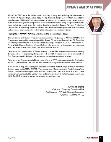 Science, Vasai and AIPMA’s AMTEC. The seminars on ‘Opportunities in Plastic Industry’ and