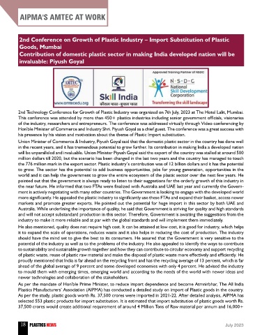 Union Minister of Commerce & Industry, Piyush Goyal said that the domestic plastic sector in the country has done well