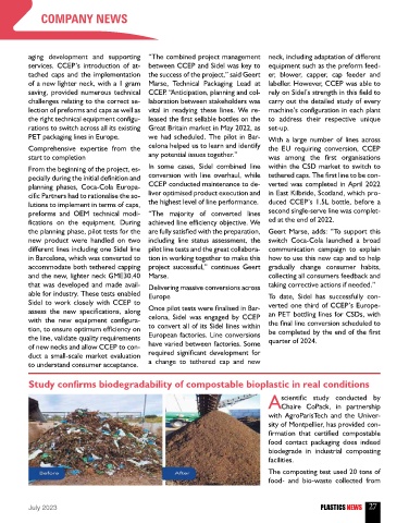 services. CCEP’s introduction of at- between CCEP and Sidel was key to equipment such as the preform feed-