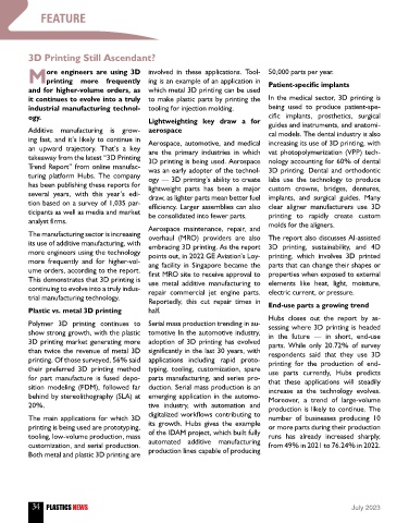 Trend Report” from online manufac- was an early adopter of the technol- 3D printing. Dental and orthodontic