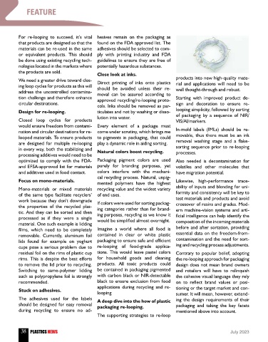 cups pose a serious problem due to re-looping of food-grade applica- ing and recycling process adjustments.