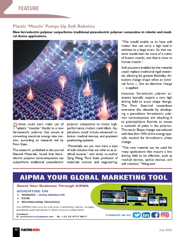 outperform traditional piezoelectric materials science and engineering. soft robotics,” Wang said.