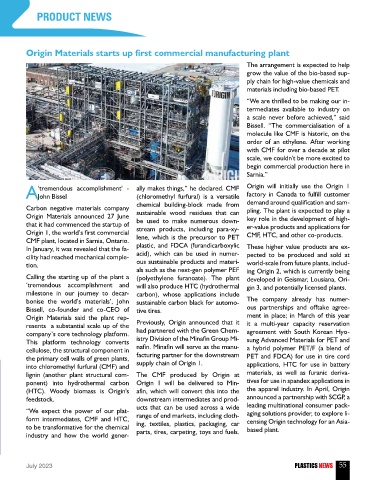 lignin (another plant structural com- The CMF produced by Origin at materials, as well as furanic deriva-