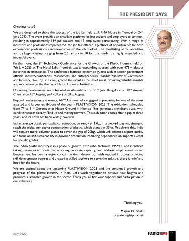 progress of the plastic industry in India. Let's work together to achieve new heights and