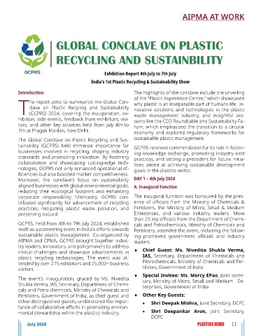 mental stewardship within the plastics industry. • Shri Deepankar Aron, Joint Secretary,