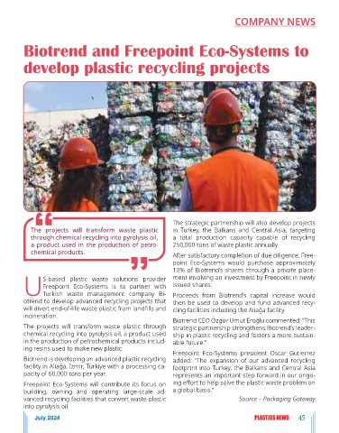Biotrend is developing an advanced plastic recycling added: “The expansion of our advanced recycling