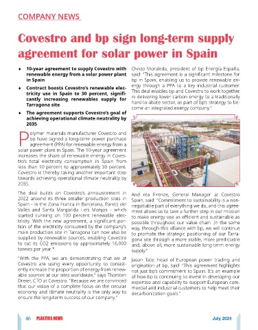 ♦ 10-year agreement to supply Covestro with Olvido Moraleda, president of bp Energía España,